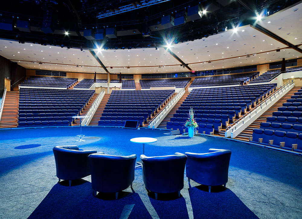 The secret lies in the hall’s flexibility. Not only can it be divided up in various ways, we can also magic away the seating. The entire Congress Hall seats 1,500 guests, but can also be divided up into smaller areas. Whatever you decide, all your participants will get a superb view of the well-equipped stage. Behind the stage, there are dressing rooms and interpreting booths. In other words, this is a fully equipped world-class congress venue.